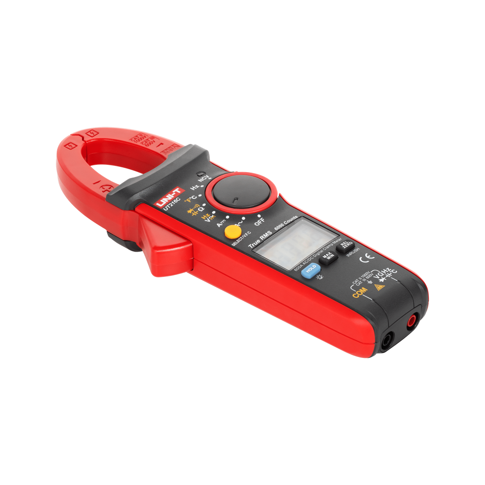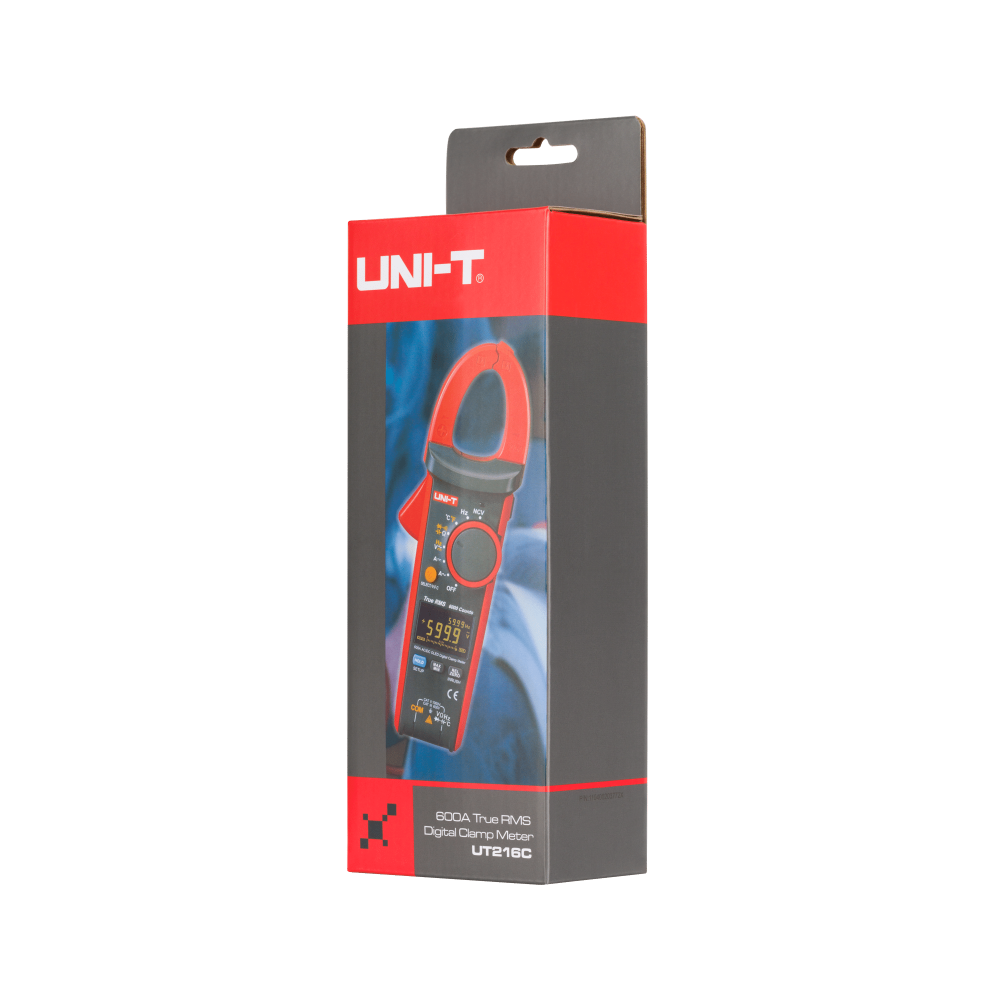 - Medidas versáteis: O UT216C mede tensão CC até 1000 V e tensão CA até 750 V, bem como corrente CC e CA até 600 A, sendo ideal para trabalhos em instalações elétricas complexas. O medidor também oferece medições precisas de resistência, capacitância, frequência e temperatura de -40 °C a 1000 °C. Graças à sua função True RMS, o UT216C fornece resultados precisos, independentemente da distorção do sinal.
