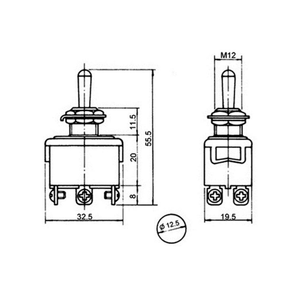 Interruptor Alavanca (On)-Off-(On), DPCO, 250V/10A - 125V/15A, 2 pólos, 6 terminais, montagem em Painel com rosca