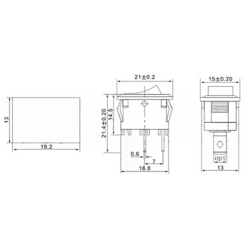 Botão de pressão/pulsador/Interruptor OFF-(ON) com 2 terminais (SPST) 10A-125V 6A-250V