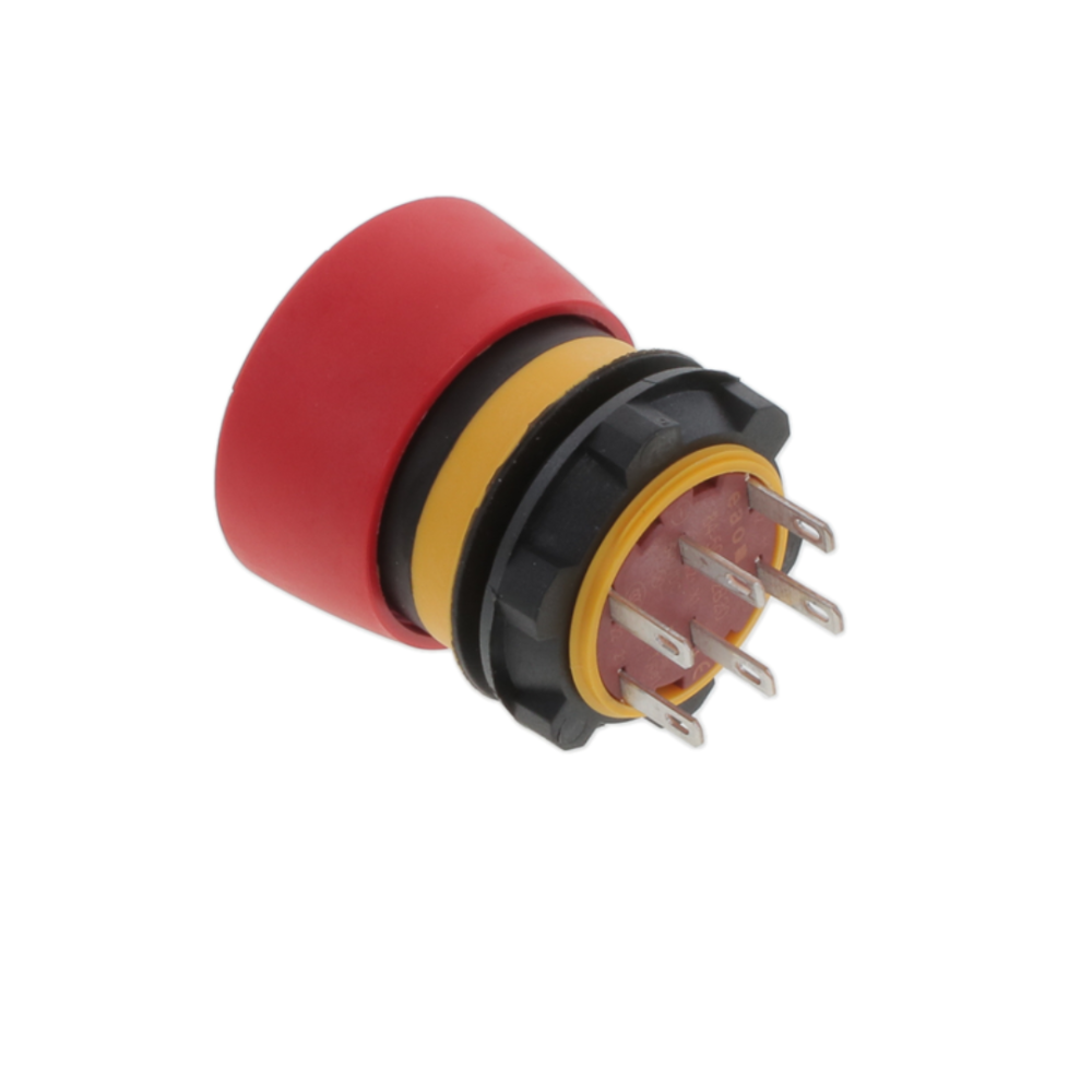 Interruptor de segurança tipo cogumelo com 2 circuitos NC (normalmente fechados) e LED vermelho