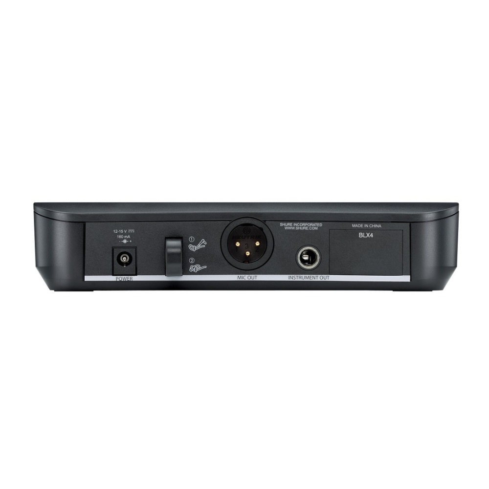 Sistema sem fio portátil VOCAL SM com até 12 frequências compatíveis, composto por receptor BLX4 e transmissor portátil BLX2/SM58. 518-542 MHz.