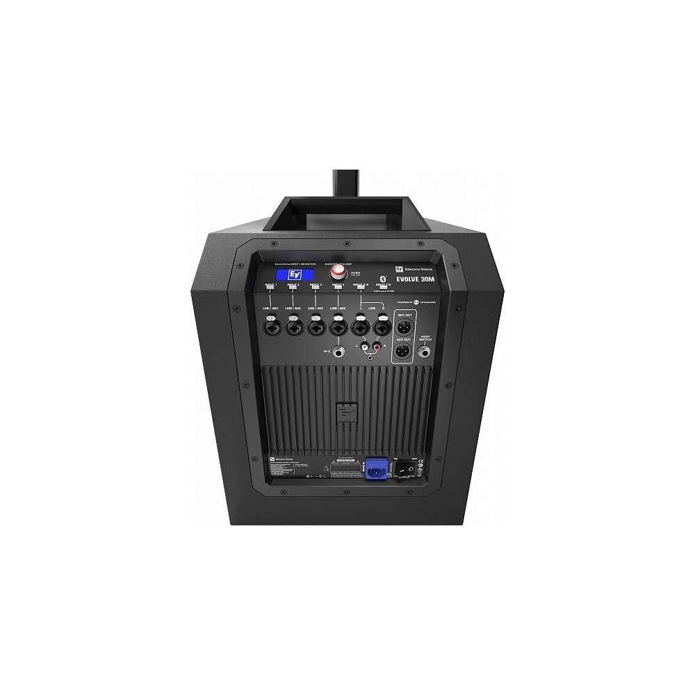 - O EVOLVE 30M foi projetado para oferecer um aumento significativo no desempenho geral de um sistema de colunas na sua categoria de tamanho/preço. Inclui um mixer digital de oito canais, efeitos integrados com qualidade de estúdio e controle remoto de todo o áudio, efeitos e funções de mixagem por meio do aplicativo Electro-Voice QuickSmart Mobile de última geração (disponível na Apple Store e no Google Play).
