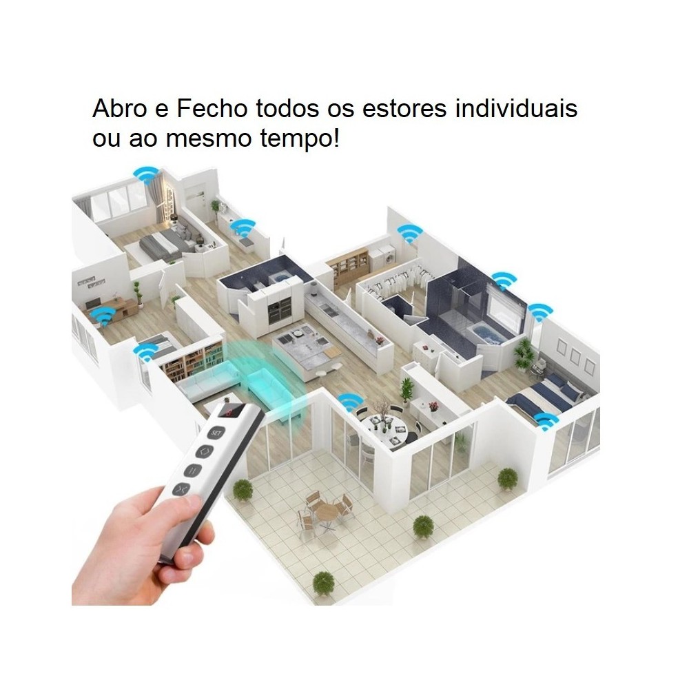 - Para controlar uma divisão completa, abrir e fechar todos os estores da casa ao mesmo tempo ou simplesmente controlar um estore.