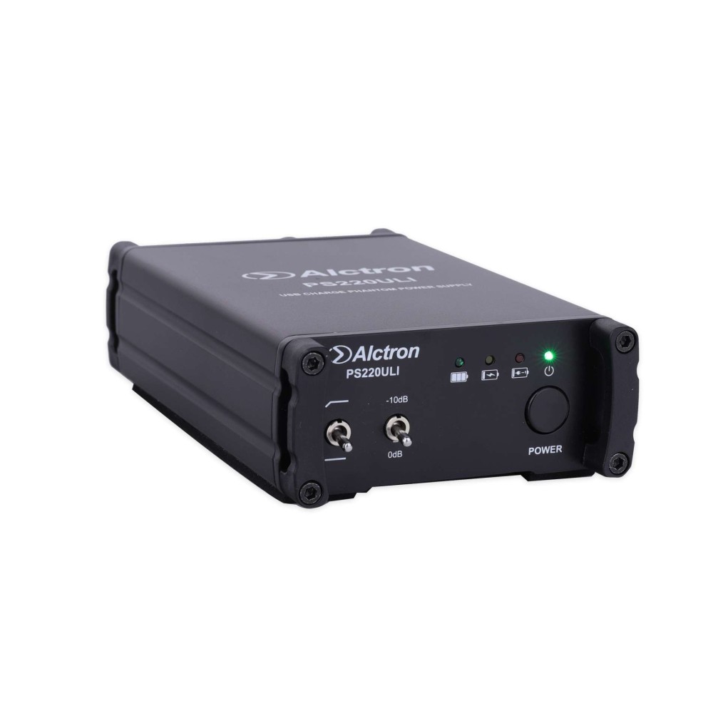 - O PS 220ULI é uma fonte de alimentação phantom portátil de última geração que opera com uma bateria de lítio de 3,7 V. Ele carrega usando um cabo de PC padrão em uma tomada elétrica ou usando um Power Bank. Ideal para uso móvel para alimentar microfones condensadores.
