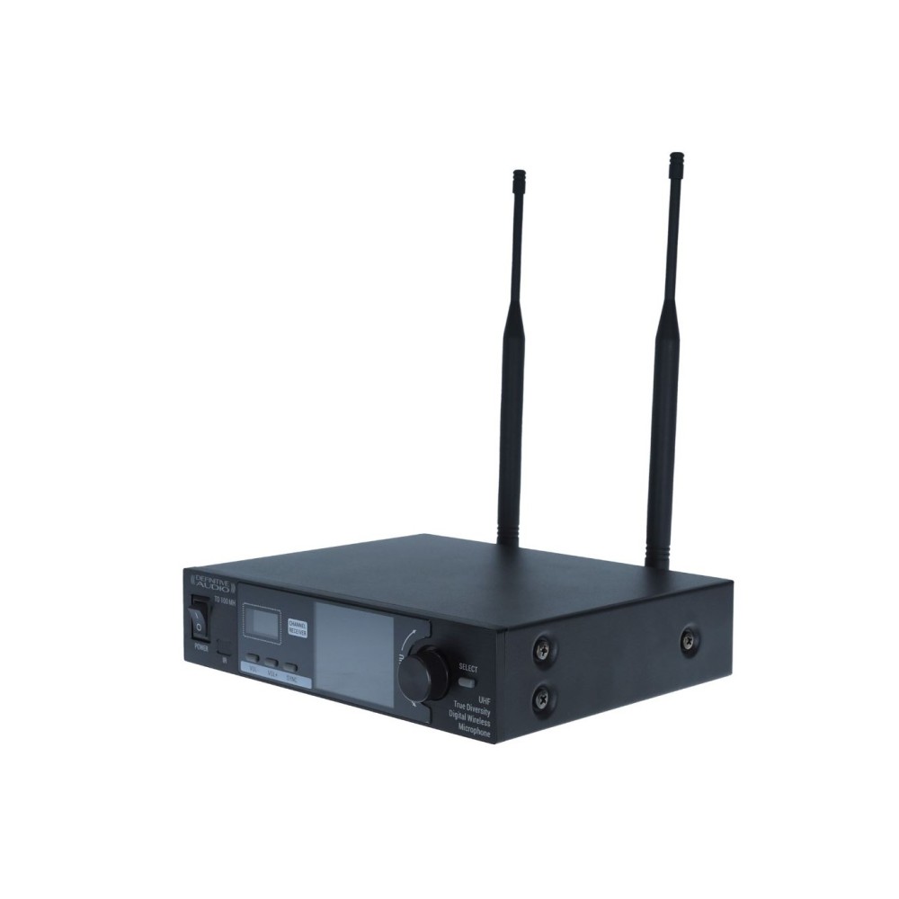 - O TD 100 MH é um microfone de mão sem fio UHF com True Diversity, que melhora significativamente a qualidade da receção durante a utilização. Ele foi projetado em torno de um gabinete de meio rack padrão 1U, uma tela LCD colorida e botões de controle para operação e configurações necessárias. Sistema sem fio do tipo PLL que permite uso fácil e eficaz em todas as condições. O TD 100 MH oferece excelente desempenho de áudio, com som claro, nítido e preciso.