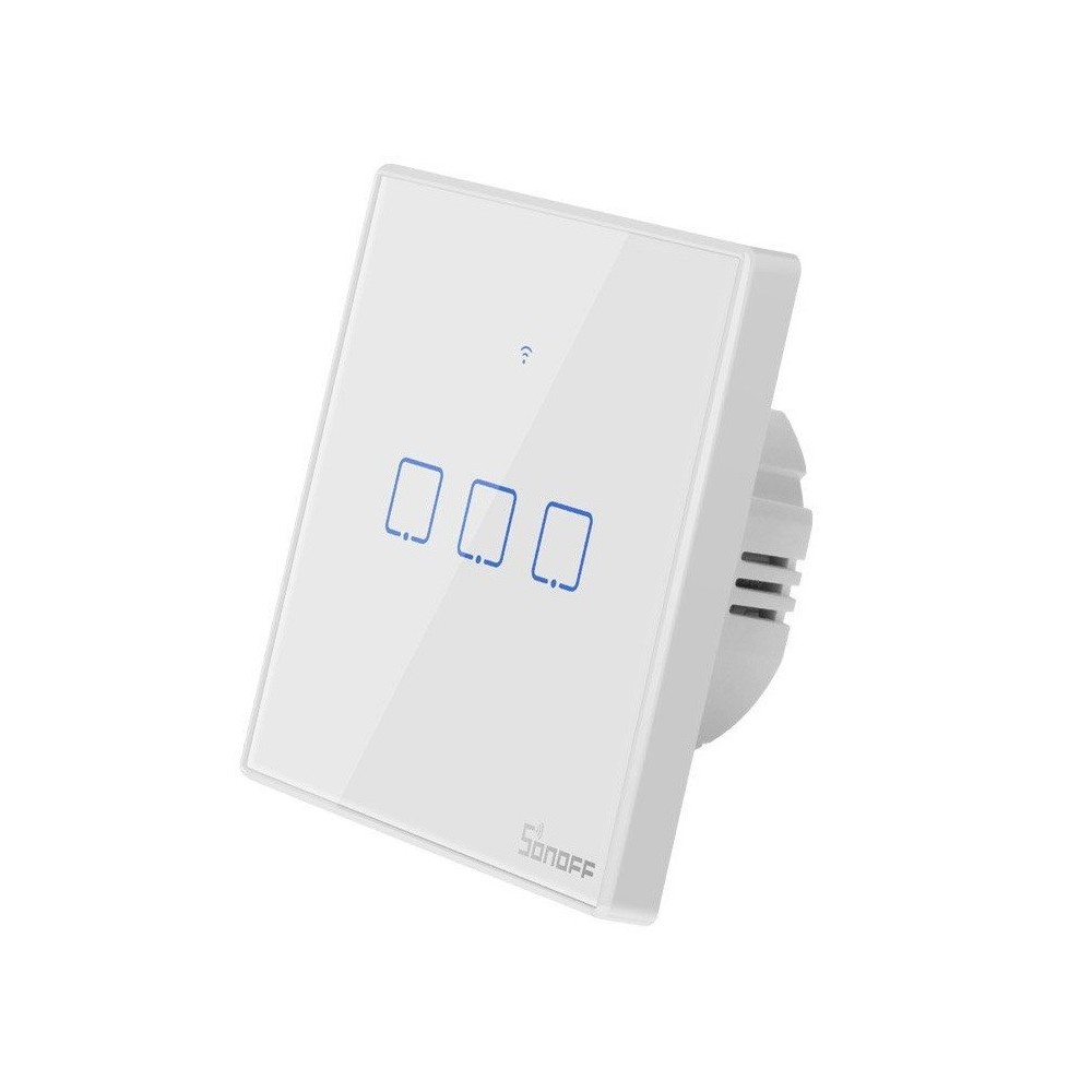 INTERRUPTOR PAREDE TATIL TRIPLO S/ FIOS C/ COMANDO SONOFF T2EU3C-TX