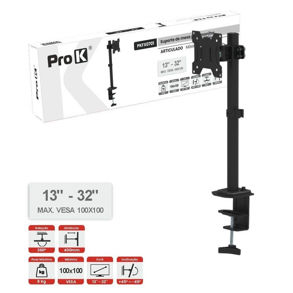 Suporte para Monitor de Mesa, 13-32", 8kg, Vesa 100x100, da marca PROK