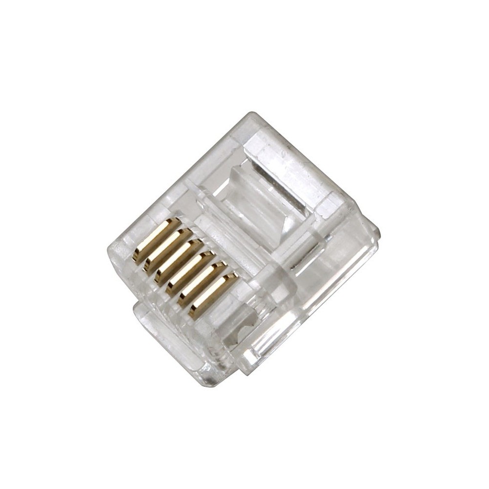 Ficha de Telefone Modular, RJ12, 6p6c, transparente, 6,6x12,3x9,6mm, para Cabo Flexível