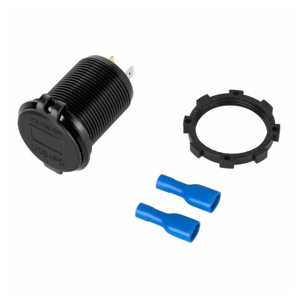 TOMADA USB-C / USB-A QUICK CHARGE COM VOLTIMETRO DIGITAL