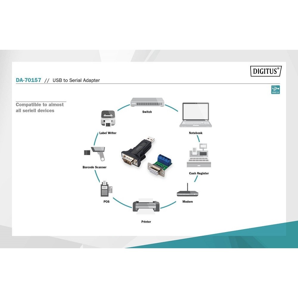 - Construção do cabo/passo: D-Sub 9pin ficha, USB A ficha