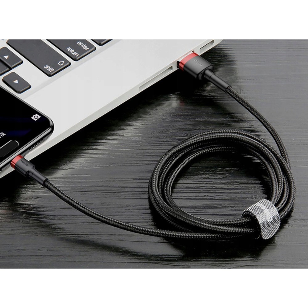- O Baseus Cafule é um cabo USB - USB Tipo C de alta qualidade, concebido para transmissão de dados e carregamento de dispositivos. Devido à sua construção reforçada, tem uma maior resistência à rutura (proteção adicional no cabo na ficha e um entrançado mais espesso apenas disponível na versão Cafule). Além disso, foram utilizados na construção materiais que reforçam a estrutura das fichas (por exemplo, alumínio).