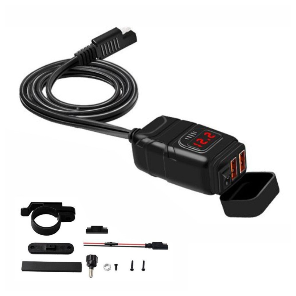 Tomada Dupla 2x USB-A 3.0, com Display, para Mota, da marca PROK